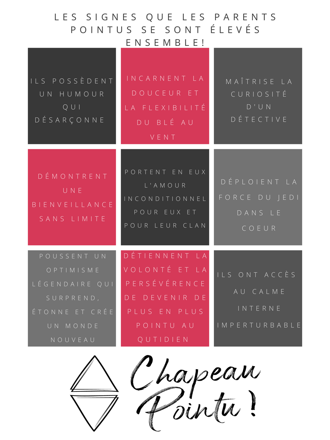Se souvenir que nos enfants nous imitent même si on ne voudrait pas. S'ils reproduisent nos travers, ils reproduisent aussi tout le beau et le bon. Alors tu veux transformer quoi?